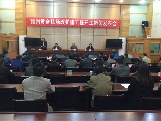 市政府召開贛州黃金機場改擴建工程開工新聞發(fā)布會。圖為發(fā)布會現場。