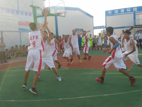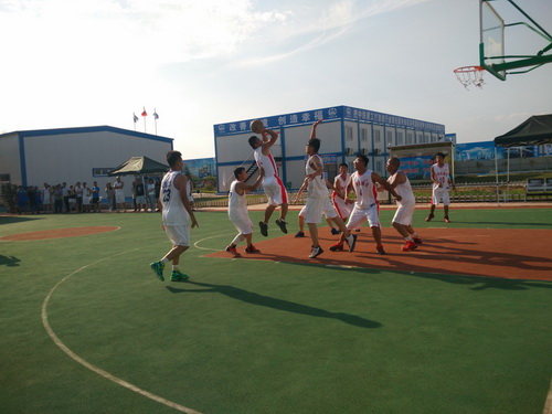 在此次的比賽中,參賽的單位有監(jiān)理3標(biāo)中企建發(fā)、1標(biāo)中鐵十二局、4標(biāo)四川場道、3標(biāo)中國華西、5標(biāo)上海路橋、8標(biāo)中鐵航空港、10標(biāo)中水十六局、6標(biāo)甘肅機(jī)械化共8支籃球隊(duì)進(jìn)行參賽,建設(shè)單位也派隊(duì)參加,進(jìn)行友誼賽,我們跟兄弟單位中鐵航空港,上海路橋,中水十六局、四川場道一決高下,最后入圍四強(qiáng),在決賽的比賽中,我們再次遇見實(shí)力強(qiáng)勁的中水十六局,雙方隊(duì)員在籃球比賽現(xiàn)場氣氛熱烈,隊(duì)員們積極進(jìn)攻,嚴(yán)密防守,精彩的配合,巧妙的搶斷,不時的將比賽氣氛推向高潮。天氣雖然炎熱,但絲毫沒有影響隊(duì)員的熱情,盡管兩支球隊(duì)都是業(yè)余籃球愛好者,但他們在比賽中均表現(xiàn)出較好的團(tuán)隊(duì)協(xié)作能力,一群年輕人激情飛揚(yáng),帶球、傳球、搶斷、上籃,賽場對抗激烈,隊(duì)員個個揮汗如雨,最后在我方隊(duì)員的努力拼搏下,以32:30的比分,贏得第一。